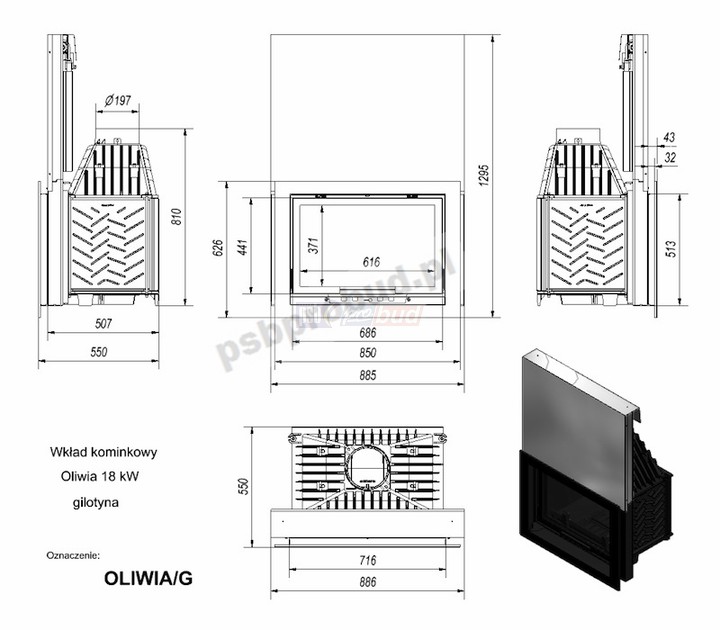 Wkład kominkowy OLIWIA 18 gilotyna + dolot